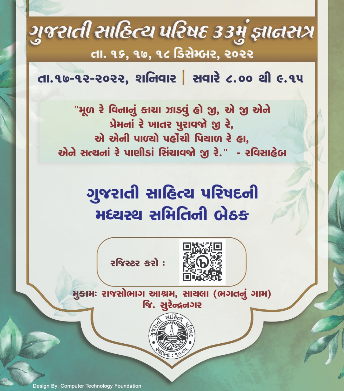 ગુજરાત સાહિત્ય પરિષદનું 33મું ત્રિ-દિવસીય જ્ઞાનસત્ર : સાયલાના રાજસોભાગ આશ્રમમાં યોજાશે