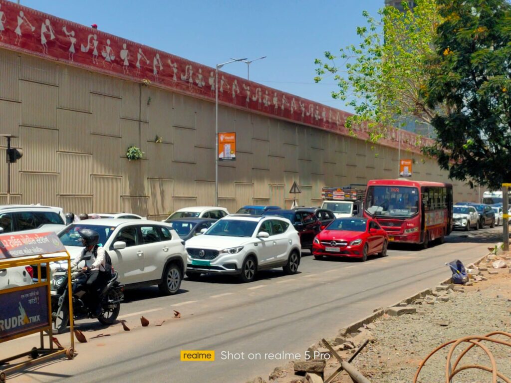 શહેરના સૌથી વ્યસ્ત ગણાતા ઈસ્કોન ચાર રસ્તા પર ટ્રાફિકની સમસ્યા સામાન્ય દિવસોમાં પણ રહેતી હોય છે. વાહનચાલકોને લૂ થી બચાવવા માટે અહીં પણ વિશાળ શેડ ઉભા કરવામાં આવ્યા છે. પરંતુ આ શેડને ટેકો આપવા માટે જે લોખંડની એન્ગલો નાખવામાં આવી છે, તે રસ્તા પર થોડી બહારની તરફ હોવાથી વાહનોને પસાર થવામાં ભારે મુશ્કેલી પડી રહી છે. આ એન્ગલોના કારણે રસ્તાની પહોળાઈ ઘટી હોય તેવો અહેસાસ થાય છે, પરિણામે ટ્રાફિકની ગતિ ધીમી પડી જાય છે.