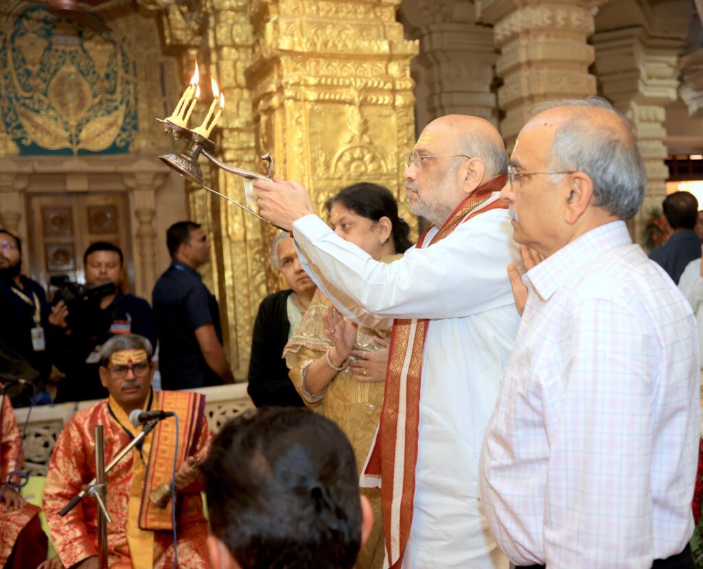 અમદાવાદઃ દેશના ગૃહમંત્રી ગુજરાતની મુલાકાતે આવ્યાં છે. આજે તેઓ ગીરસોમનાથ જિલ્લાની મુલાકાતે ગયા હતા. અહીં તેમણે ચંદુપવાવ ખાતે વિકસિત ભારત સંકલ્પ યાત્રામાં જનતા સાથે સંવાદ કર્યો હતો. આ ઉપરાંત તેમણે જૂનાગઢમાં શ્રી દિવ્યકાંત નાણાવટીજીની જન્મ શતાબ્દી પર્વ રુપાયતન ટ્રસ્ટ દ્વારા આયોજીત સ્મૃતિ પર્વ કાર્યક્રમમાં હાજરી આપી હતી. દરમિયાન તેઓ સુપ્રસિદ્ધ યાત્રાધામ સોમનાથ ગયા હતા. જ્યાં તેમણે સોમનાથ દાદાની પૂજા અર્ચના કરી હતી.