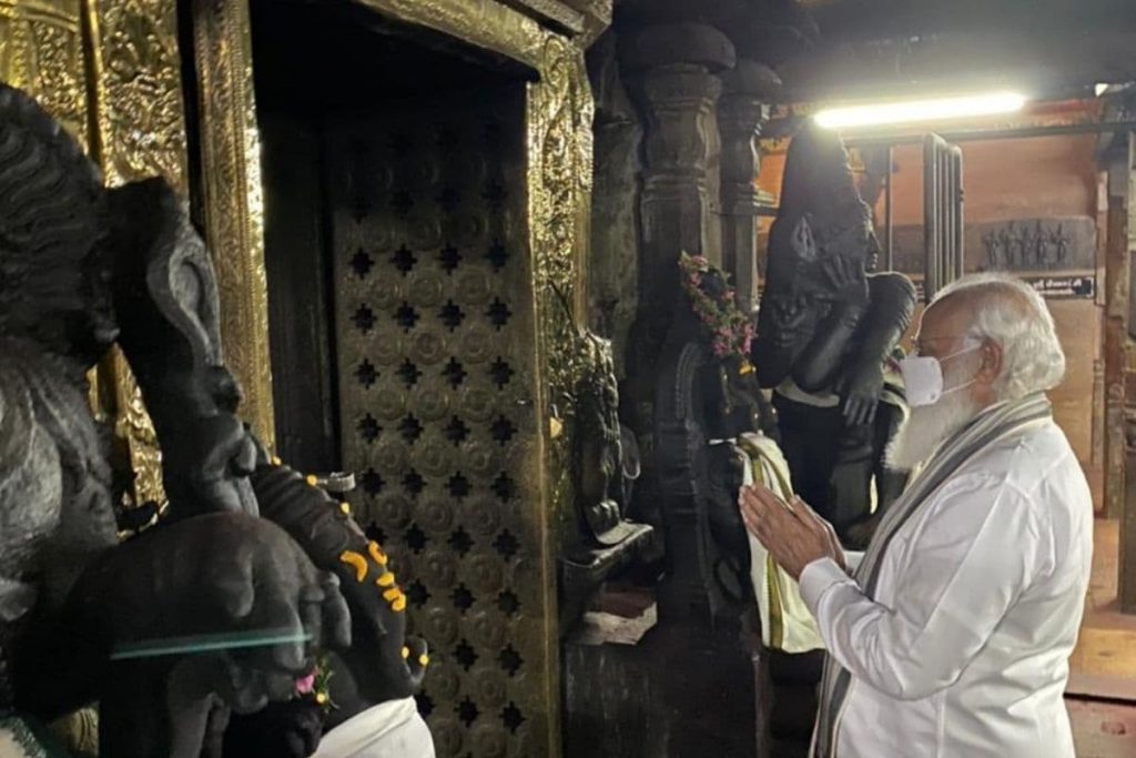તામિલનાડુ પહોંચ્યા બાદ વડાપ્રધાન નરેન્દ્ર મોદીએ મદુરાઇના પ્રખ્યાત મીનાક્ષી મંદિરમાં પૂજા-અર્ચના કરી. પારંપરિક ડ્રેસમાં પીએમ મીનાક્ષી સુંદરરેશ્વર મંદિરમાં પહોંચ્યા હતા. જ્યાં તેમનું ભવ્ય સ્વાગત કરવામાં આવ્યું હતું.