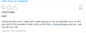 આ સાથે જ ભૂતકાળમાં ઘણા બોલિવૂડ અને ટીવી સ્ટાર્સ કોરોનાની ઝપેટમાં આવી ચૂક્યા છે. અભિનેત્રી કાજોલે એક પોસ્ટ કરીને કહ્યું કે તેનો કોવિડ-19 ટેસ્ટ પોઝિટિવ આવ્યો છે. તે તેની પુત્રી ન્યાસાને ખૂબ જ મિસ કરી રહી છે. હાલમાં કાજોલ આઈસોલેશન હેઠળ મછે. કાજોલે કોરોના હોવાની માહિતી આપવાની સાથે દીકરી ન્યાસાનો ફોટો પણ શેર કર્યો છે. પ્રિયંકા ચોપરાએ તેની આ પોસ્ટ પર પ્રતિક્રિયા પણ આપી છે.