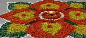 પીળા રંગના ગલગોટા સાથએ લાલ રંગના ગુલાબની પાખડીઓથી તમે અવનવી ડિઝાઈનમાં ઘરના આંગણમાં રંગોળી કરી શકો છઓ જે તમારા આંગણને મહેકાવશે પણ અને શોભા પણ વઘારશે
