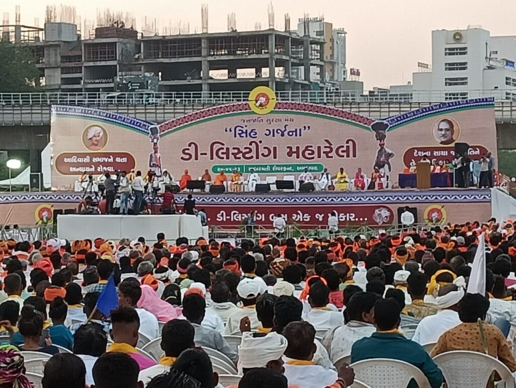 અમદાવાદ: જનજાતિ સુરક્ષા મંચ, ગુજરાત દ્વારા 27મે શનિવારના રોજ અમદાવાદ રિવરફ્રન્ટ ખાતે “સિંહ ગર્જના, ડી-લિસ્ટીંગ મહારેલી”નું આયોજન કરવામાં આવ્યું હતું, જેમાં સમગ્ર ગુજરાતમાં થી હજારોની સંખ્યામાં જનજાતિ સમાજના લોકો એકત્ર થયા હતા. આ મહારેલીમાં સંબોધન કરતા પ્રકાશભાઉ ઉઈકેજીએ (જનજાતિ વિષયમાં કાયદા નિષ્ણાત અને માનનીય ન્યાયાધીશ) જણાવ્યું કે શૈક્ષણિક, સામાજિક તથા આર્થિક રીતે નબળા હોવાને કારણે અનુસૂચિત જનજાતિ વર્ગને પણ કલમ 342 હેઠળ અનામતનો લાભ આપવામાં આવ્યો હતો. પરંતુ તત્કાલીન બંધારણ સભામાં કલમ 342માં ધર્માંતરિત જનજાતિઓને અનામતનો લાભ નહીં આપવાની જોગવાઈ ઉમેરી શકાઈ નહોતી. તેનું દુષ્પરિણામ એ આવ્યું કે 1950 થી 1970 સુધીના બે દાયકામાં જનજાતિ સમુદાયમાં અનેક લોકોનું ધર્માંતર કરવામાં આવ્યું. તે અંગે તત્કાલીન કોંગ્રેસ સરકારના સંસદસભ્ય શ્રી કાર્તિક ઉરાવના પ્રયાસથી સંયુક્ત સંસદીય સમિતિની રચના કરવામાં આવી. તે ઉપરાંત સંયુક્ત સંસદીય સમિતિ દ્વારા સંસદમાં એક ખરડો દાખલ કરવામાં આવ્યો કે જનજાતિના જે લોકોએ ખ્રિસ્તી અથવા ઇસ્લામ સંપ્રદાયો અપનાવી લેવામાં આવ્યો હોય તેમને કલમ 342 હેઠળ અનામતનો લાભ આપવામાં ન આવે. પરંતુ કાર્તિક ઉરાવજીના પ્રયાસો છતાં એ ખરડો આજ સુધી સંસદમાં પસાર થઈ શક્યો નથી.