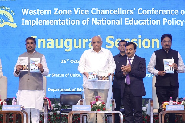 અમદાવાદઃ મુખ્યમંત્રી ભૂપેન્દ્ર પટેલે નર્મદા જિલ્લાના એકતાનગર સ્થિત ટેન્ટ સિટી-2 ખાતે રાષ્ટ્રીય શિક્ષણ નીતિ (NEP) 2020ના અમલીકરણ અંગે વાઈસ ચાન્સેલર્સ અને NEP કોઓર્ડિનેટર્સની એક દિવસીય કોન્ફરન્સનો શુભારંભ કરાવ્યો હતો. કેન્દ્રીય શિક્ષણ મંત્રી ધર્મેન્દ્ર પ્રધાન, આરોગ્ય અને તબીબી, ઉચ્ચ અને ટેક્નિકલ શિક્ષણ મંત્રી ઋષિકેશભાઈ પટેલ અને શિક્ષણ રાજ્ય મંત્રી પ્રફુલ્લભાઈ પાનશેરિયાની પ્રેરક ઉપસ્થિતિમાં આયોજિત કોન્ફરન્સમાં NEP અંતર્ગત શિક્ષણક્ષેત્રને સમૃદ્ધ અને ક્ષમતાકેન્દ્રી બનાવવા સારસ્વતોએ અહીં સામૂહિક વિચાર મંથન કર્યું હતું.