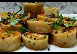 એક કઢાઈમાં તેલ ગરમ કરીને રાય ફોડીલો તેમાં તલ અને કઢી લીમડો પણ એડ કરો હવે જે રોલ વાળ્યા છે તેને કઢાઈમાં એક એક કરીને ગોઠવી લો. અને ઘીમે ઘીમે રોલ ખુલીન જાય તે રીતે ફેરવી લો