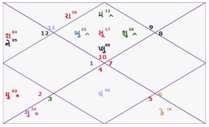 | સૂર્ય રાશિ અને નક્ષત્ર | મકર ~૧૭.૭° – શ્રવણ નક્ષત્ર |