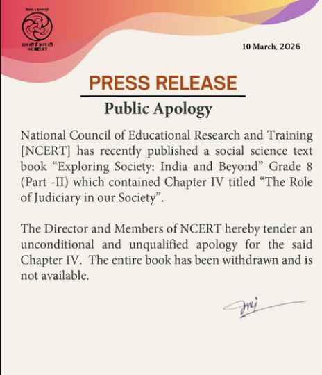NCERT એ નિવેદનમાં જણાવ્યું કે, “અમે થયેલી અસુવિધા માટે ખેદ વ્યક્ત કરીએ છીએ અને તમામ હિતધારકોની સમજદારીની પ્રશંસા કરીએ છીએ.” આ નિર્ણય એવા સમયે આવ્યો છે જ્યારે શાળાના પુસ્તકોમાં બંધારણીય સંસ્થાઓના ચિત્રણ પર સતત નજર રાખવામાં આવી રહી છે.