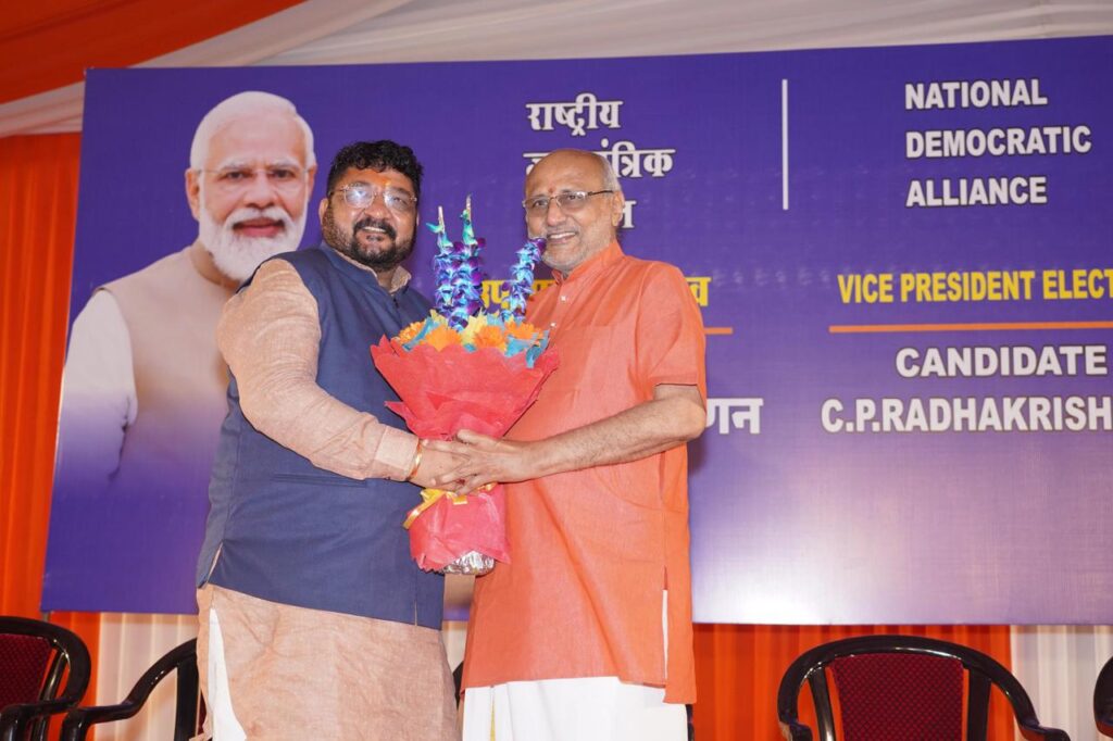 નવી દિલ્હીઃ ઉપરાષ્ટ્રપતિ પદની ઉમેદવારી માટે એનડીએ-ભાજપાના ઉમેદવાર સીપી રાધાકૃષ્ણન અને વિપક્ષના ઉમેદવાર નિવૃત્ત ન્યાયમૂર્તિ બી.સુદર્શન રેડ્ડીએ ઉમેદવારી ફોર્મ ભર્યાં છે. તેમજ એનડીએ અને વિપક્ષ દ્વારા પોત-પોતાના ઉમેદવારને જીતાડવા માટે પ્રયાસો શરૂ કરી દેવામાં આવી રહ્યાં છે. દરમિયાન એનડીએના ઉમેદવાર સીપી રાધાકૃષ્ણન ગુજરાત ભાજપના સાંસદોને મળ્યાં હતા. તેમજ તેમની સાથે સંવાદ કર્યો હતો.
