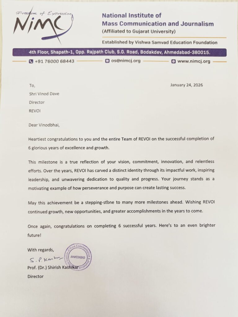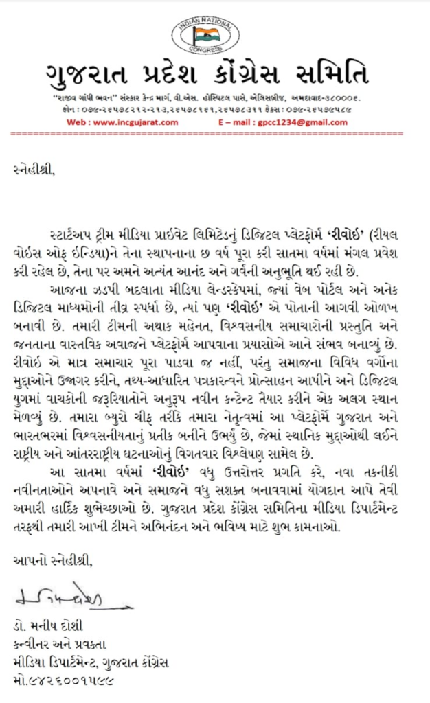 અમદાવાદ, 25 જાન્યુઆરી 2026:  સ્ટાર્ટઅપ ટ્રીમ મીડિયા લિમિટેડનું ડિજિટલ પ્લેટફોર્મ રિયલ વોઈસ ઓફ ઈન્ડિયા (રિવોઈ) 6 વર્ષ પૂર્ણ કરીને આજે સાતમા વર્ષમાં મંગળ પ્રવેશ કર્યો છે.