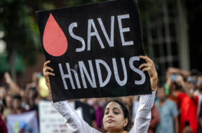 હિન્દુઓ પરના અત્યાચાર મુદ્દે હજારો લોકોનું દિલ્હીમાં બાંગ્લાદેશ હાઈ કમિશન પાસે વિરોધ પ્રદર્શન