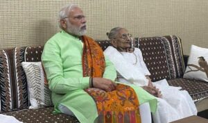 અમદાવાદ. વડાપ્રધાન નરેન્દ્ર મોદી રવિવારે સાંજે ફરી એકવાર ગુજરાત પહોંચ્યા હતા. માતા હીરાબેનને મળવા તેઓ અમદાવાદ એરપોર્ટથી સીધા ગાંધીનગર પહોંચ્યા હતા. માતાના ચરણ સ્પર્શ કરીને આશીર્વાદ લીધા અને સાથે ચા પીધી. અગાઉ ઓગસ્ટ અને જૂનમાં પણ તે તેની માતાને મળવા આવ્યો હતો. પીએમ મોદી તેમની માતા હીરાબેનને અડધો કલાક સુધી મળ્યા બાદ પાર્ટી ઓફિસ ‘કમલમ’ જવા રવાના થયા હતા.