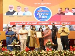 સુરતઃ મુખ્યમંત્રી વિજય રુપાણી અને નાયબ મુખ્યમંત્રી નિતીન પટેલના નેતૃત્વના પાંચ વર્ષના સુશાસન પ્રસંગે સરકાર રાજ્યભરમાં ઊજવણી કરી રહી છે. ત્યારે આજે ઊજવણીની ભાગ રૂપે સુરત ખાતે રોજગાર દિવસની ઊજવણી કરવામાં આવી હતી. આ પ્રસંગે સી.આર. પાટીલ અને વિજય રૂપાણી હાજર રહ્યા હતા અને રોજગાર મેળામાં મુખ્યમંત્રીના હસ્તે 62 હજાર યુવકોને રોજગાર નિમણૂંક પત્ર આપવામાં આવ્યા હતા અને અનુબંધમ રોજગાર નામની પોર્ટલ પણ લોન્ચ કરવામાં આવી હતી.